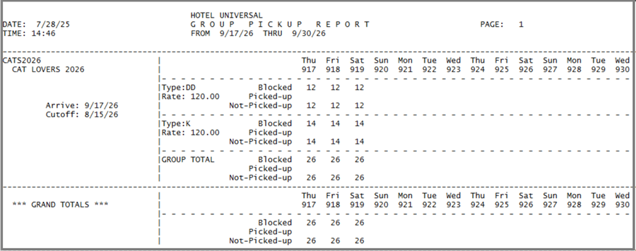 Print a Group Pickup Report for handy reference to make sure your allotments in the CRS match what you've blocked in the PMS. It is important that the availability matches, and that the two systems stay in sync.