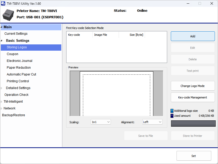 Logos must be uploaded to each printer using the Epson Printer Utility, which you will download from Epson.
